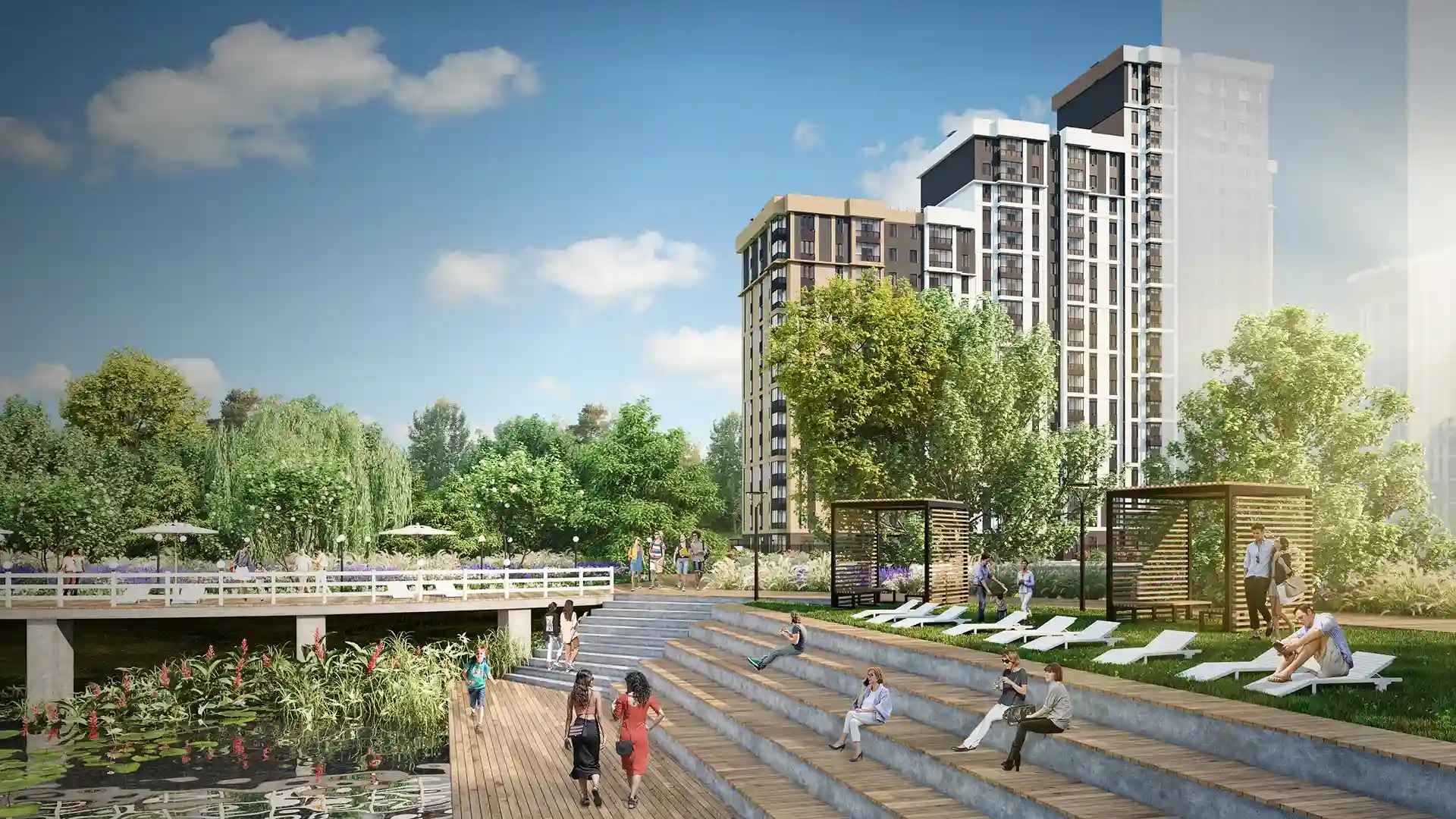 Набережная вдоль реки, зелёные дворы, спортивные и детские площадки, велодорожки и променад – лучшие локации для ваших прогулок.